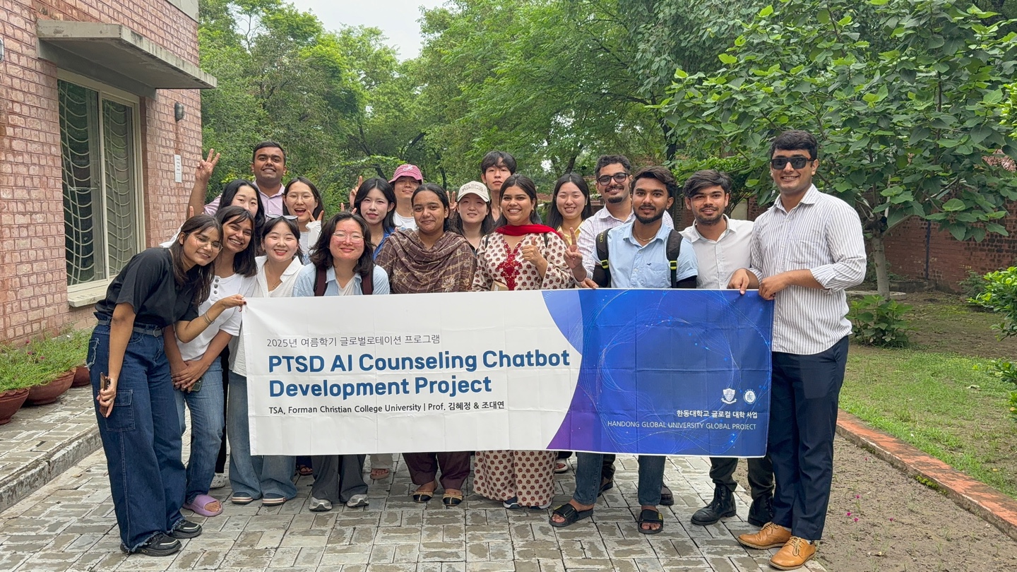 From July 14–26, 2025, a research team from South Korea’s Handong Global University (HGU) visited Forman Christian College (A Chartered University) under their Global Rotation Project (GRP). Their mission? To clinically validate “Auntie Joy”—an AI Chatbot designed to support survivors of Post-Traumatic Stress Disorder (PTSD)—within Pakistan’s unique cultural landscape, focusing on a severely discriminated minority group